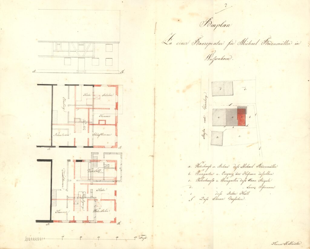Am 20.03.1824 geht das Eigentum an Michael Bodenmiller, den Schwiegersohn des Lorenz Wersing, welcher ein lebenslanges Wohnrecht behält (bis 1832). 1845 bricht Michael Bodenmiller den hinteren Teil der östlichen Haushälfte mit dem Austragsstüberl ab und erweitert hierdurch sein Wohnhaus.