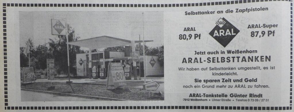 Hier ist Weißenhorns ältester durchgehend genutzter Tankstellenstandort, seit 1961 ununterbrochen eine Aral-Tankstelle.