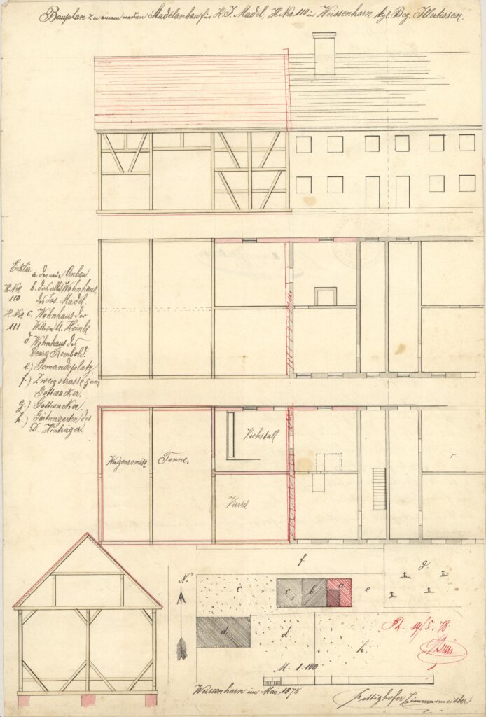 Madel Josef, Taglöhner, erwirbt das Haus am 14.11.1874. Am 02.06.1878 kann Madel eine Teilfläche aus dem städt. Grundstück hinzukaufen. 1879 bricht Madel das alte Haus ab und errichtet einen Neubau. Hierbei wird der kleine Anbau abgebrochen und stattdessen ein neuer, größerer Stadel angebaut.