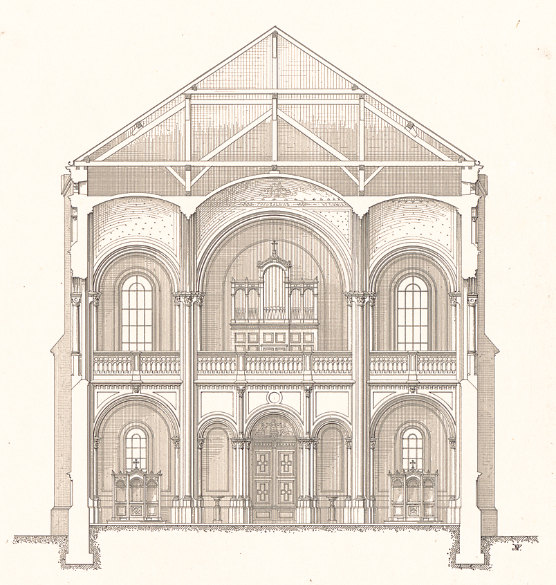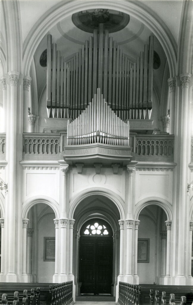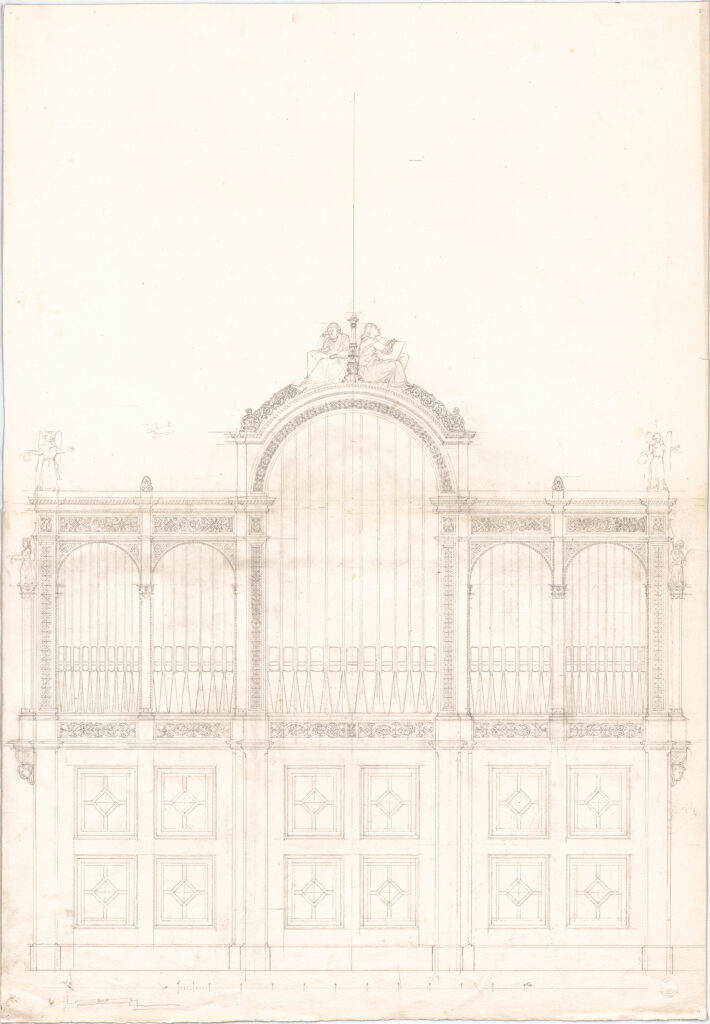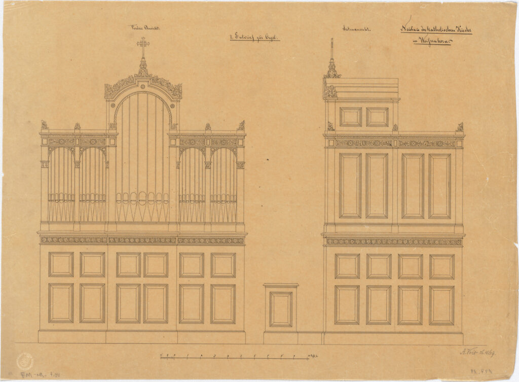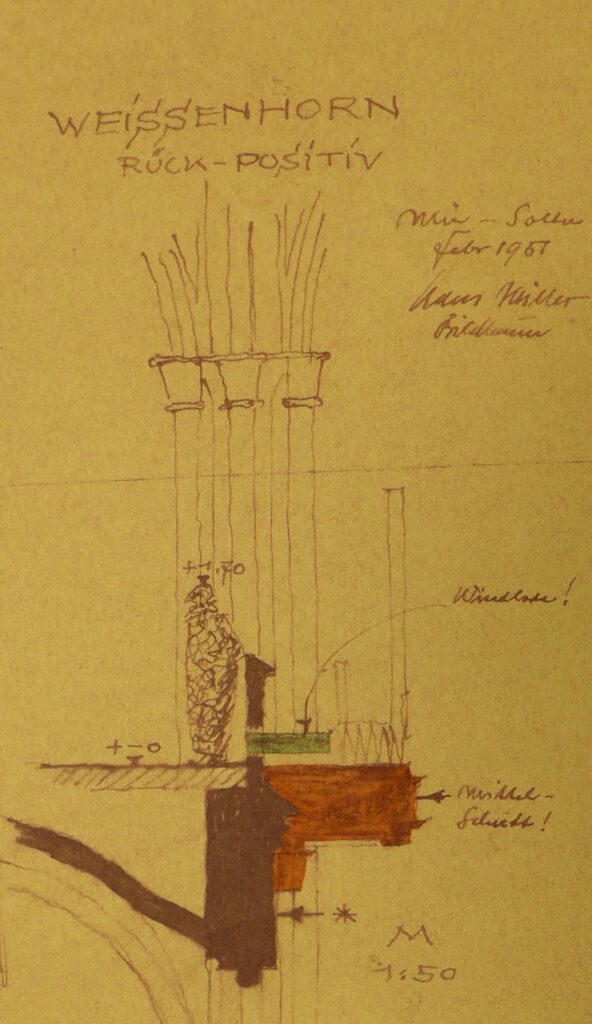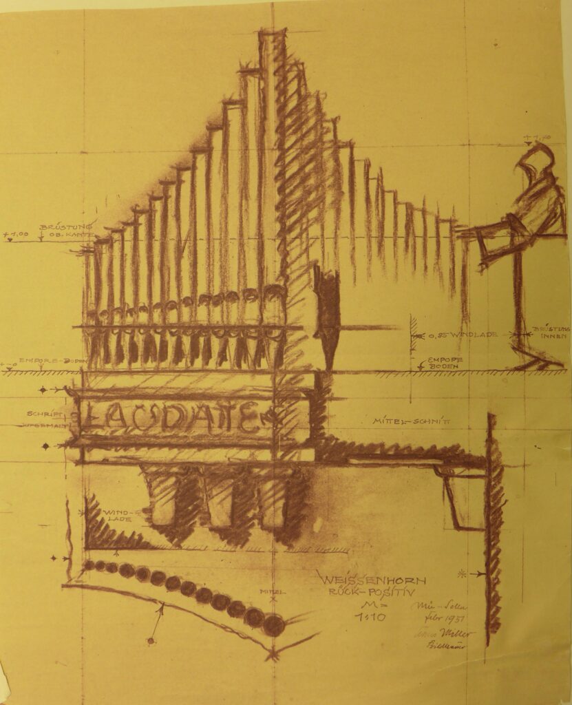 Architekt August von Voit betrachtete ’seine‘ Kirche als Gesamtkunstwerk und fertigte daher auch mehrere Entwürfe für den Orgelprospekt.