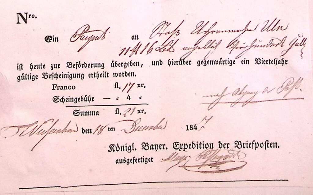 - 1858 wurde durch den deutschen Zollverein das Pfund einheitlich mit 500 g definiert, gegenüber 560 g des bayerischen Pfunds. Es wird angenommen, dass bei der Gewichtsangabe aus 1866 bereits das metrische Pfund angegeben wurde. ↩︎