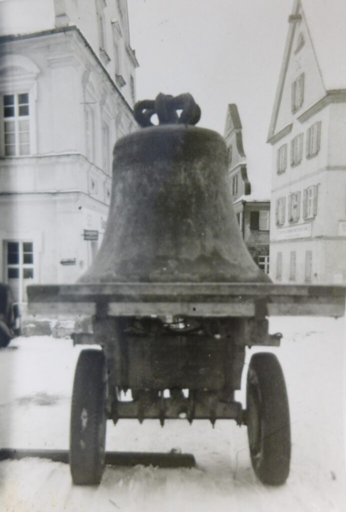 1768 war eine Glocke des Geläuts der Stadtpfarrkirche gesprungen. Der Rat beschloss daher am 23.07.1768, sie in Ulm umgießen zu lassen und darauf das österreichische und das städtische Wappen einzuprägen. Zwar obliege das der Kirchenpflegschaft, weil aber diese nicht hinreichend bemittelt sei und die Stadt ohnehin den Turm, die Uhr und das Geläute im kleinen unterhalte, so müsse man sich schon gefallen lassen, die Reparatur ohne künftige Verpflichtung daraus selbst vorzunehmen.