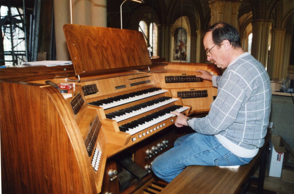 Es ergab sich, dass die 1959 von der Fa. Steinmeyer, Oettingen, als Opus 1965 gebaute Wandnischenorgel für den Großen Saal der Staatlichen Hochschule für Musik in München zur Verfügung stand, wo sie fast 40 Jahre lang die Ausbildung in der Kirchenmusik prägte. In den 80er-Jahren wurde die Orgel dort erneuert, aufgegeben und eingelagert. Nach deren Wiederentdeckung wurde sie für die Weißenhorner Kirche überlassen und freigegeben.