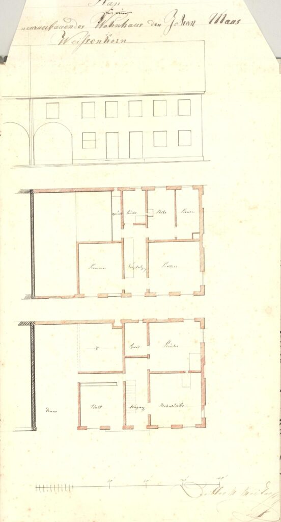 Am 10.10.1789 wird Maas Johann, Taglöhner, Eigentümer. 1845 möchte Maas sein Wohnhaus um ein Stockwerk erhöhen und nach Norden so weit wie den bestehenden Anbau verlängern. Er baue sein Haus somit so hoch wie das des Nachbarn. Der Nachbar Sebastian Hartinger und die Baukommission begrüßen das Vorhaben, weil es der Verschönerung diene.