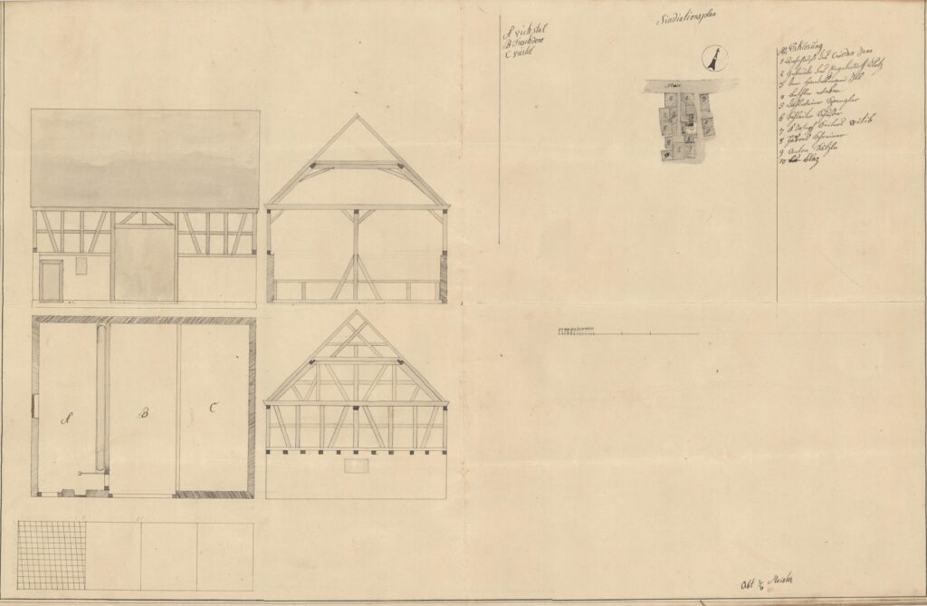 1773 wurde der Stadel wohl abgebrochen, im Steuerbuch nur noch als Ludwig Vogels Stadelhofstatt bezeichnet. Das Urkataster zeigt hier einen Garten.