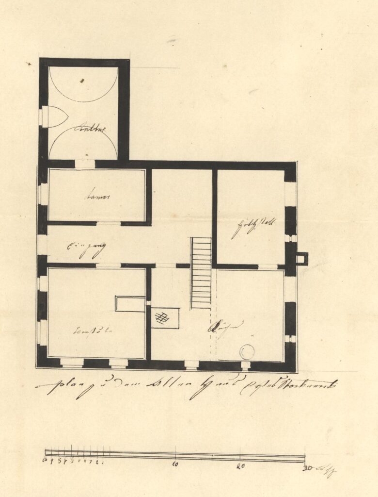 1678 wird das Haus geteilt. Die östliche Hälfte, der Stadel, wird an den Messerschmied Christoph Strölin verkauft, der den Stadel zum Wohnhaus Prof.-Jann-Gasse 1 umbaut.