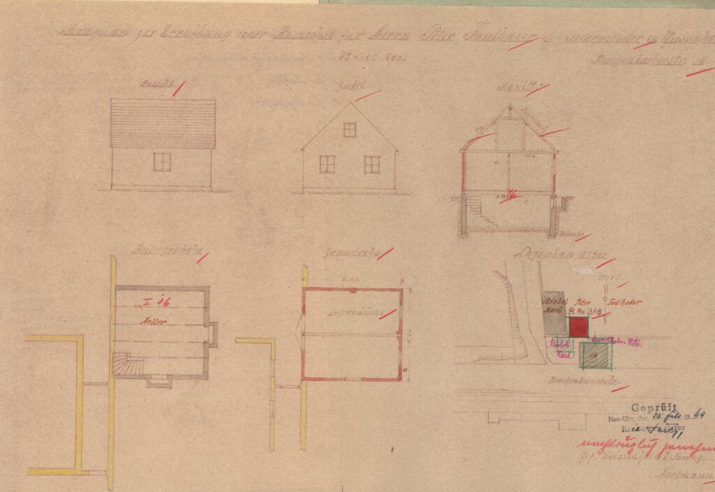 1881 versuchte der Schreinermeister Alois Betz sein Glück mit dem Bauantrag für ein einstöckiges Gebäude und erhielt eine Baugenehmigung.
