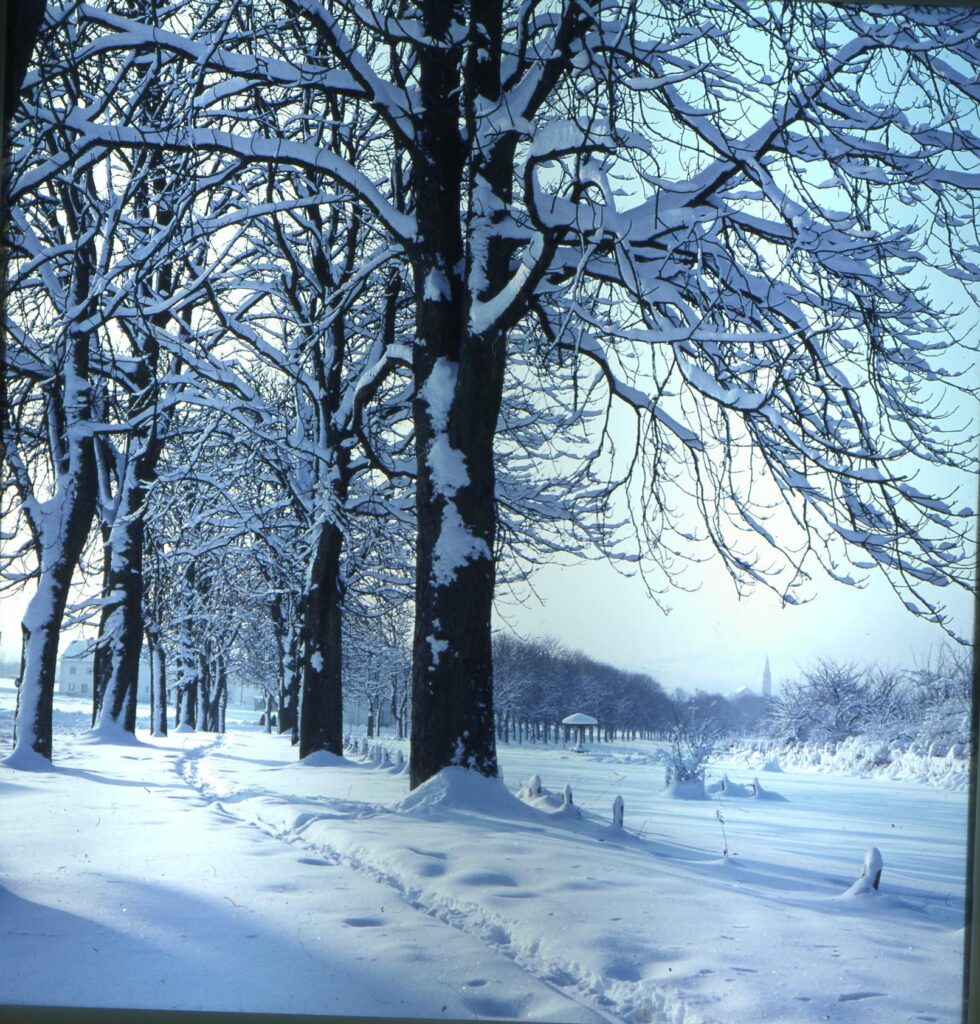 Ein Foto von vor 1899 zeigt die noch nicht befestigte Straße und die noch jungen Bäume. Auf einem weiteren Foto von 1910 sind die Bäume schon 21 Jahre alt.