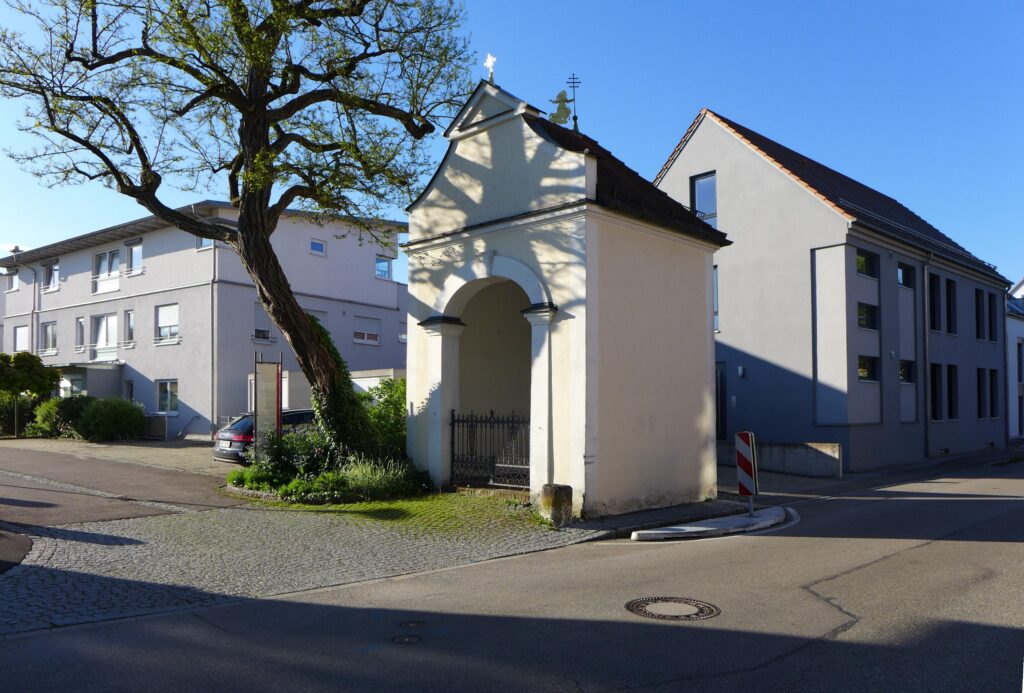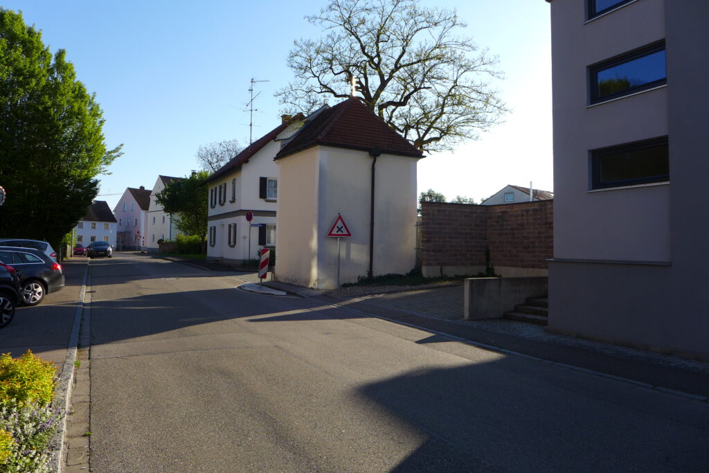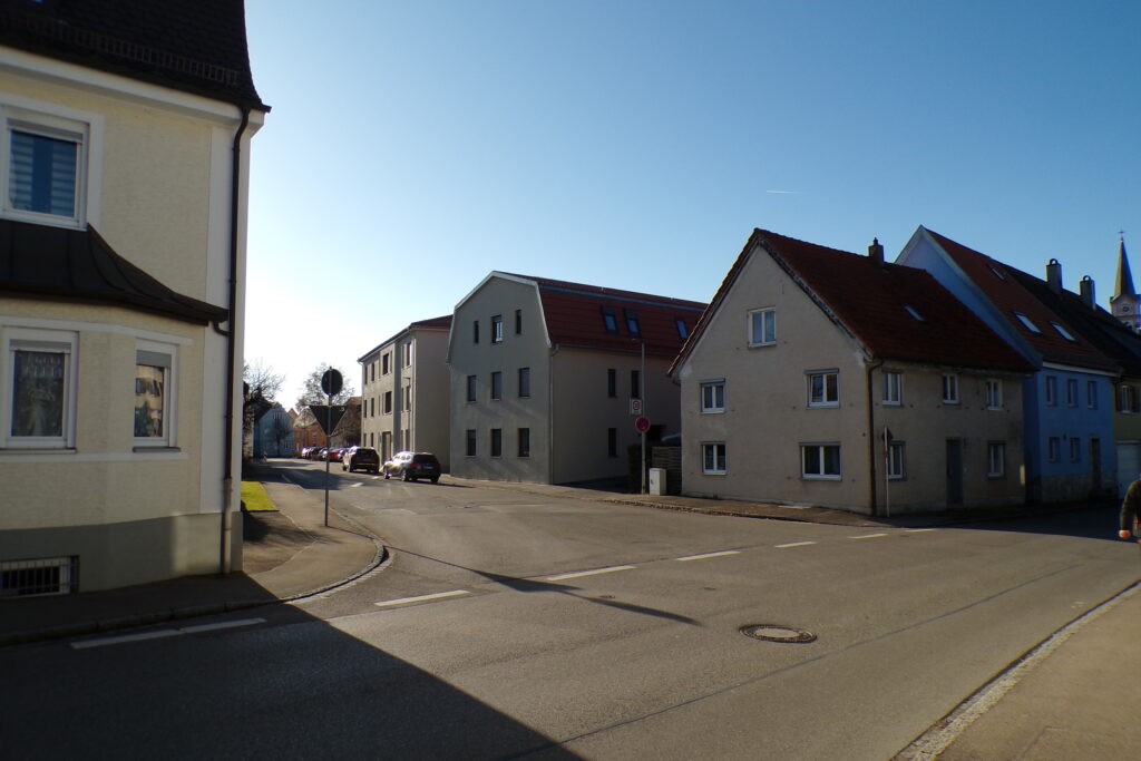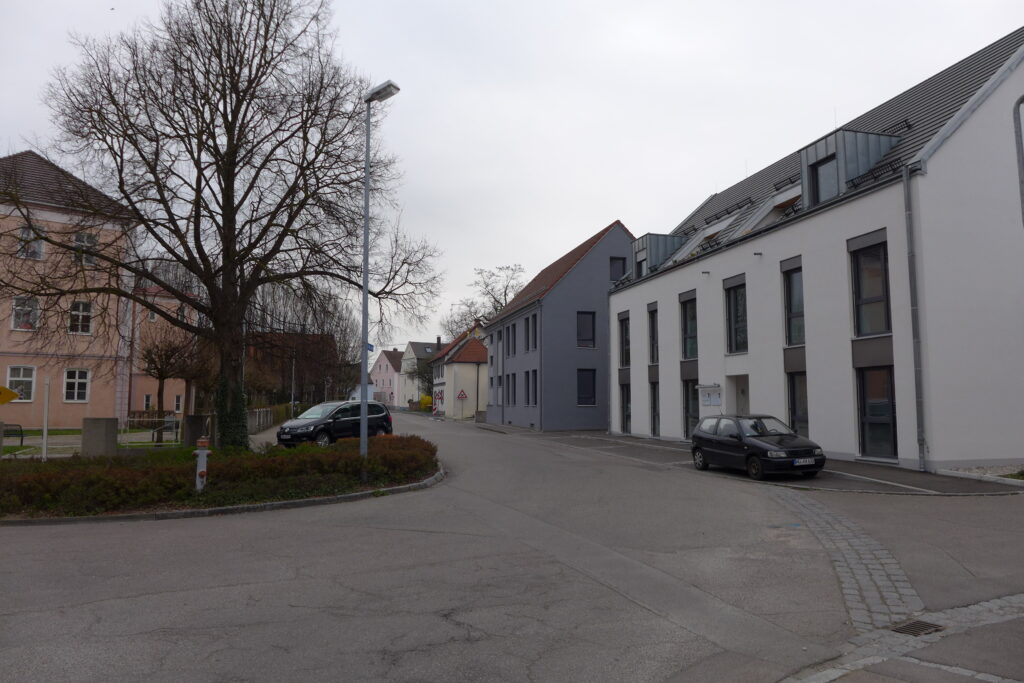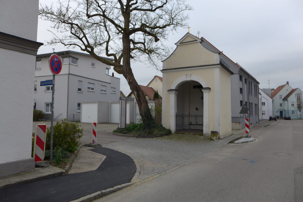 Nach der Neubebauung des Molkereigrundstücks Kapuzinerstraße 2 wurde die unübersichtliche Einmündung an der Kapuzinerkapelle durch eine Verkehrsinsel etwas entschärft.