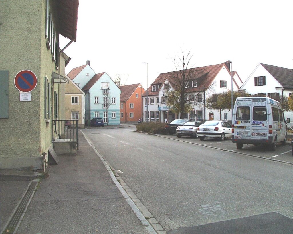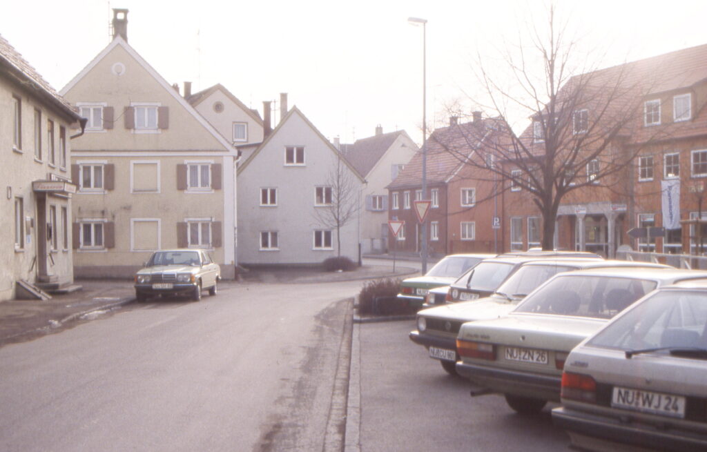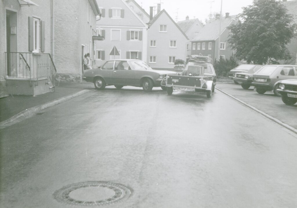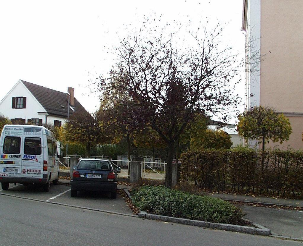 Nach Abbruch des Schulpavillons zwischen 1978 und 1983 wurden auf der Westseite der Straße Schrägparkplätze hergestellt.