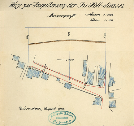 Auf der Westseite der Straße wurde 1928 ein Gehweg angelegt.