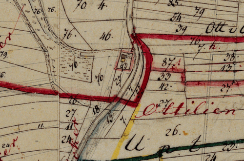 Ehemaliges Sägewerk mit Unternehmervilla, ab ca. 1985-2010 schrittweise Betriebsaufgabe und Bebauung mit Supermärkten
