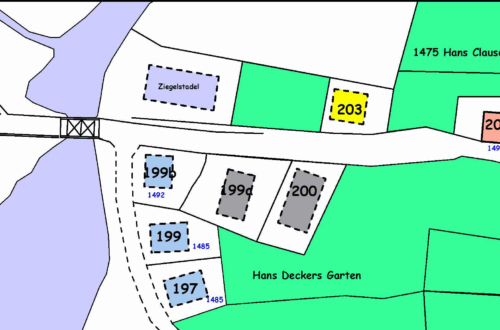 Ehemaliges landwirtsch. Anwesen unbekannter Größe und Aussehens. Erstbebauung 1551, abgebrochen ~1640, Neubebauung 1692, ca. 1920 abgebrochen. Vorgängerbebauung bis ~1490 als Schindhaus.