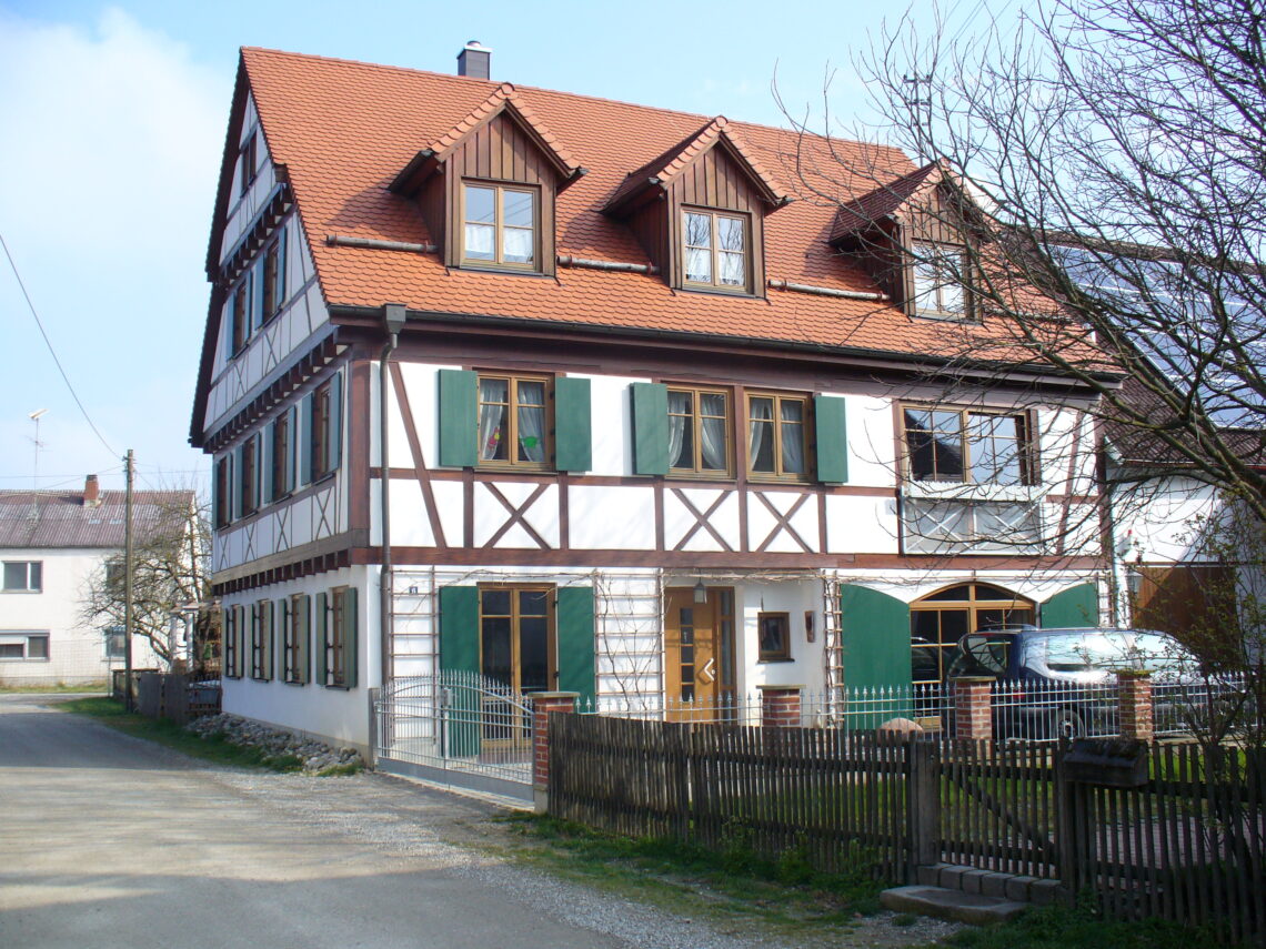 Eineinhalbgeschossiges Einfamilienhaus mit Satteldach, 1988 an Stelle eines 1969 abgebrochenen landwirtschaftl. Anwesens von 1792 neu errichtet, dieses mit Vorgängerbauten von 1595, 1502 und noch älterem Vorgänger