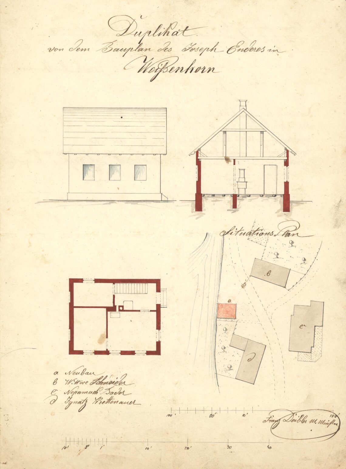 Zweigeschossiges Wohnhaus mit Werkstatt, 1962 an Stelle eines Vorgängerbaus von 1492 errichtet