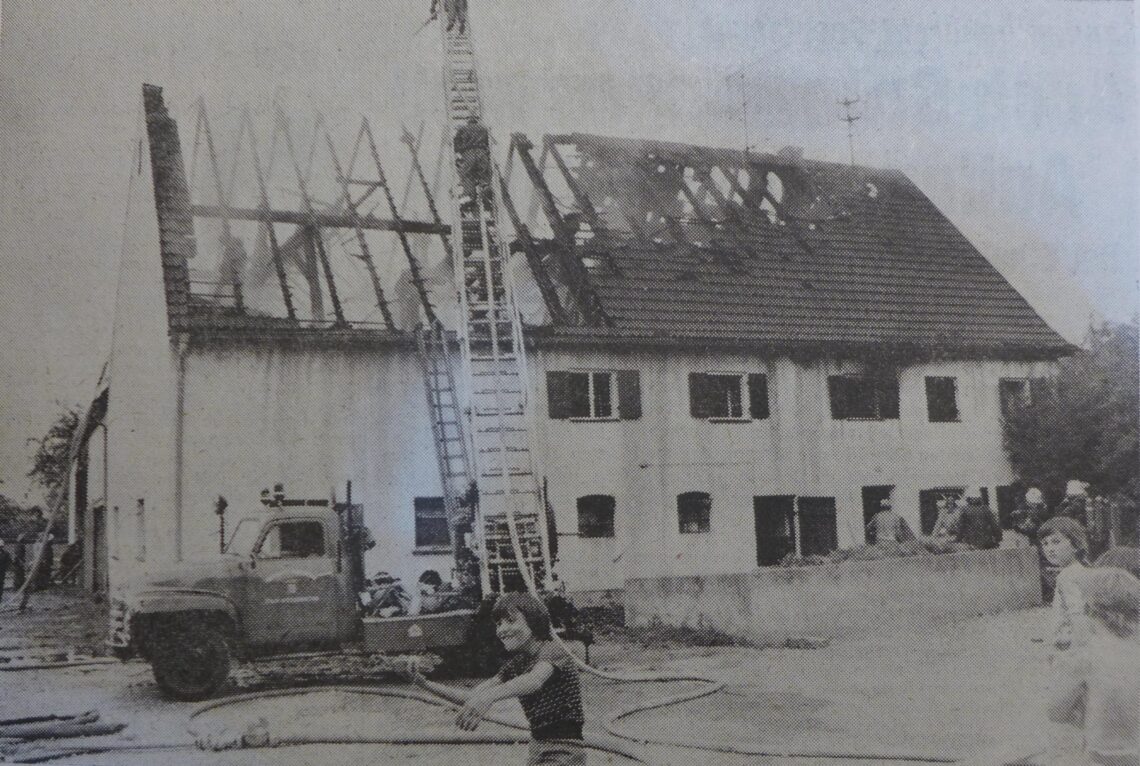 Zweigeschossiges stattliches landwirtsch. Anwesen, ehemalige Garnsiede, 1575 erbaut, durch Hochwasser ~1636 zerstört, danach unbebaut, ~1740 wieder bebaut, Obergeschoss und Giebel in Fachwerk, 1976 nach Brand ersatzlos abgebrochen; Grundstück mit neuen landwirtsch. Gebäuden wieder bebaut
