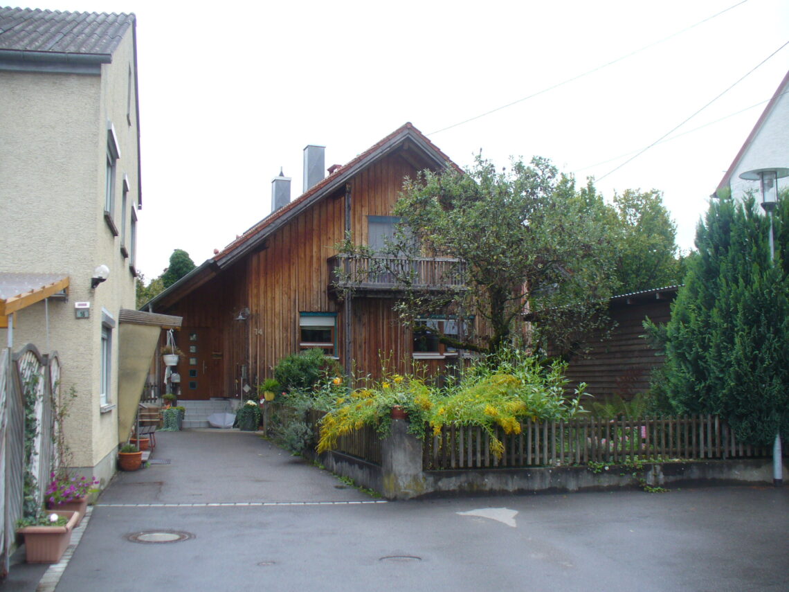Eineinhalbstöckiges Einfamilienhaus, 1996 durch Um- und Anbau eines 1958 erbauten Wohnhauses im wesentlichen neu gebaut, 2013 durch Garagenüberbau erweitert