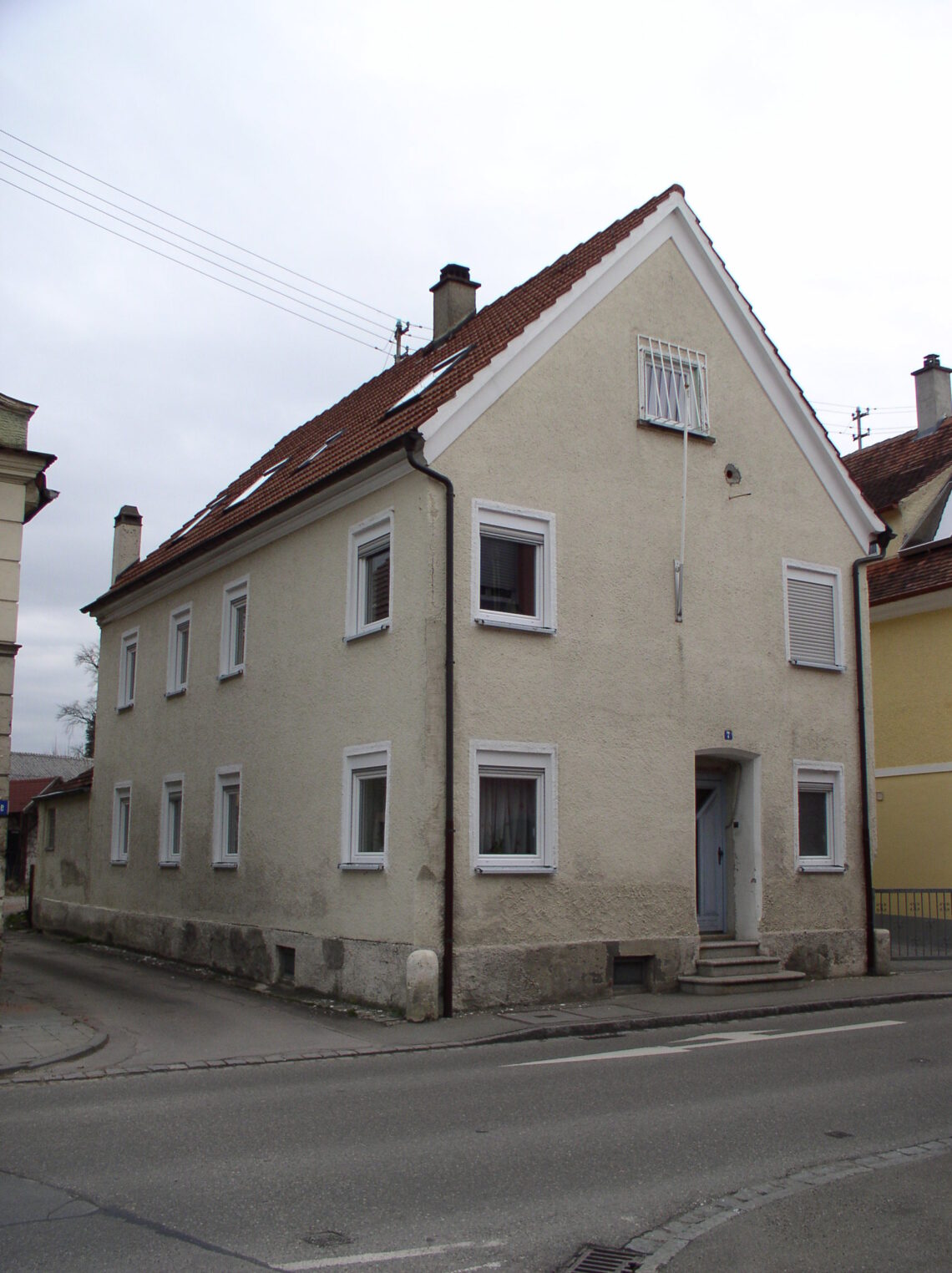Zweigeschossiges Wohnhaus, zweigeteilt, auch Beethovengasse 1, 1864 in best. Stadel des Anwesens Reichenbacher Str. 4 eingebaut, Fassadenänderung 2006