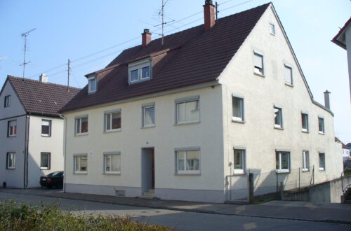 Zweigeschossiges Zweifamilienhaus, erbaut 1962 als Einfamilienhaus, 1997 zum Zweifamilienhaus erweitert